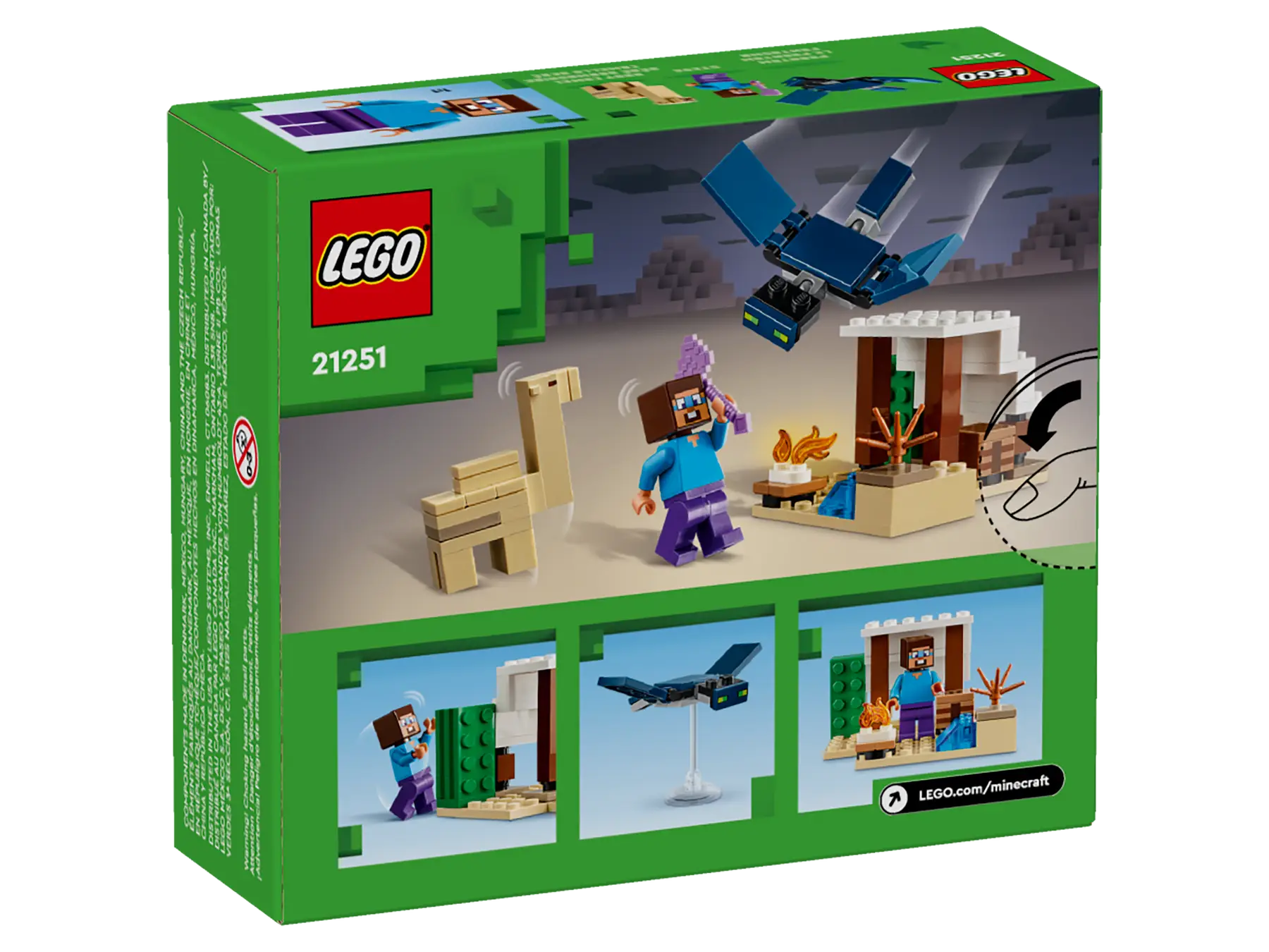 Este juguete de construcción LEGO® Minecraft® para jugadores a partir de 6 años es el primero ambientado en el bioma Desierto del universo Minecraft. El set La Expedición de Steve al Desierto (21251) propone a los peques construir una casa Minecraft en un entorno hostil y luego defenderla de los ataques del fantasma volador.
