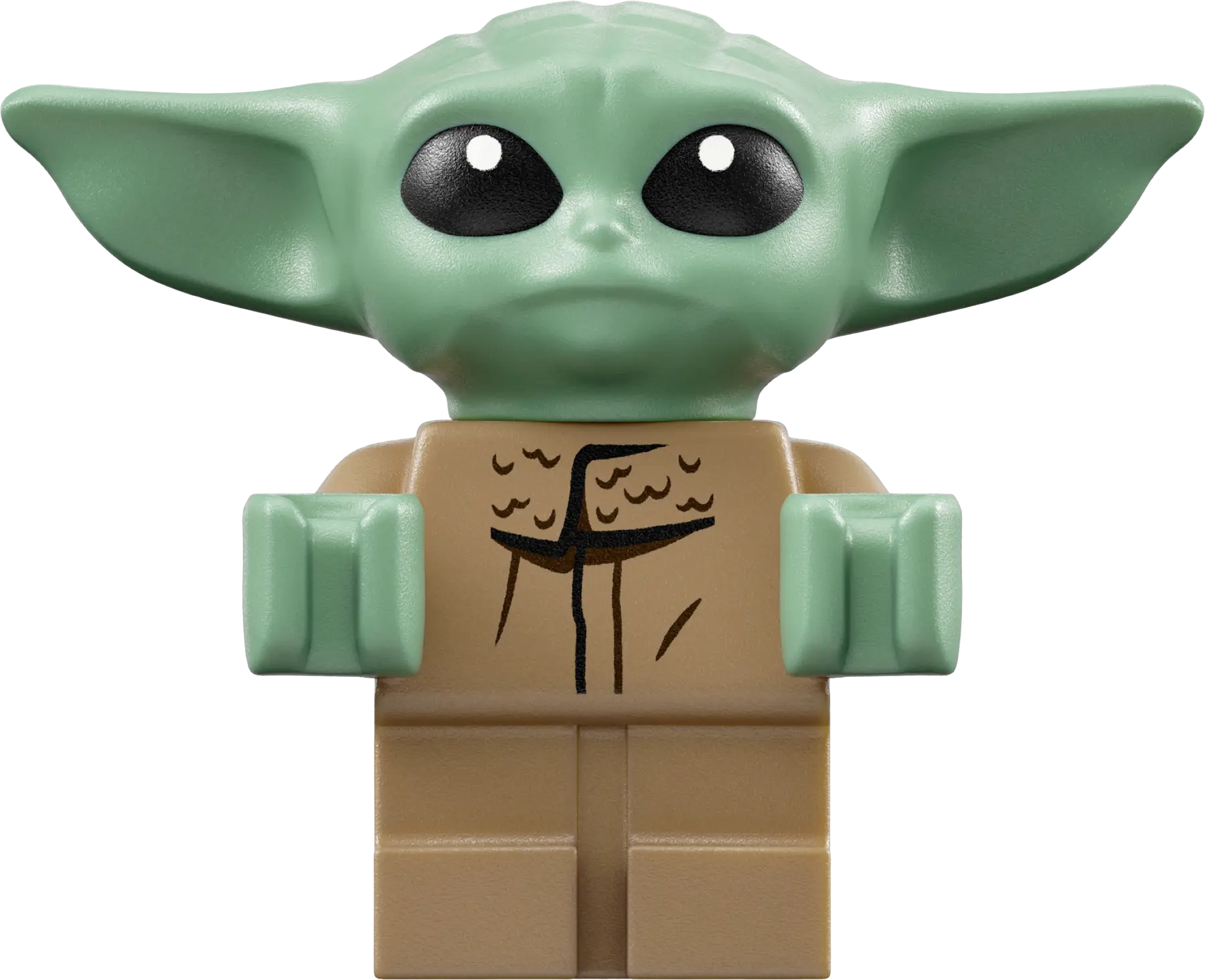 - Una minifigura LEGO del Mandaloriano con una pistola bláster y un elemento que representa una mochila propulsora, además de una figura LEGO de Grogu